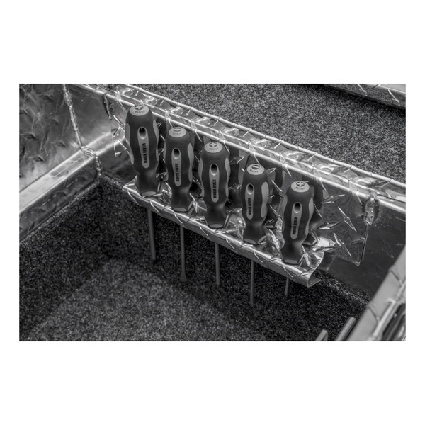 UWS Secure Lock crossover truck tool boxes provide the ultimate in security and convenience, offering you a truck bed tool box unlike any other. It features a unique locking system, an innovative interior and a highly durable design. The Secure Lock truck box operates with two lockable twist handles. These handles are key-operated and allow you to lock the truck tool box from either the driver or passenger side. The two locks also give you the option to lock both sides for maximum security. The lid of the Secure Lock tool box is particularly strong, featuring our patented RigidCore foam-filled design. This gives the lid greater structural integrity and resists bending and warping. Like most UWS tool boxes, this box also features extra-thick aluminum construction, and the tub is welded into a single piece to ensure waterproof protection for your items. It is also equipped with a MicroSeal