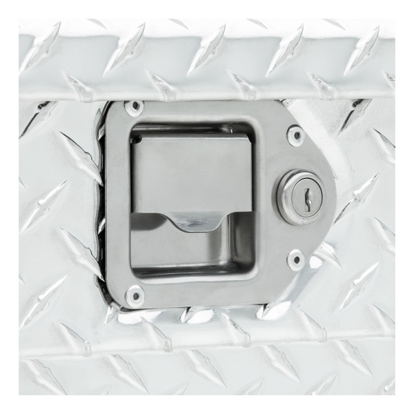 UWS crossover truck tool boxes are the tried-and-true American way of keeping your tools organized, on-hand and fully secure no matter where you and your truck roam. Each UWS tool box is assembled, right here in the USA, from extra-thick aluminum welded into a single-piece tub. This provides the tool box with reliable strength and helps keep the interior sealed off from the elements. Aluminum construction also makes the box highly resistant to corrosion for long-lasting use. This particular box features a slim-line design, providing adequate clearance for truck beds that have extremely limited space between the wheel wells and truck cab. It also features a low profile, meaning the lid is built lower than our standard lid. This provides a better view out the rear cab window and additional clearance for other items in the truck bed, if needed. To add even more strength to the crossover tru