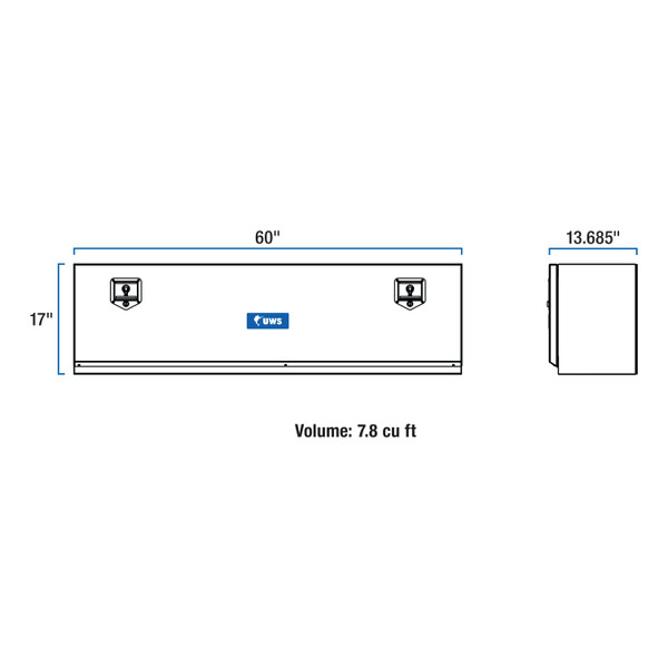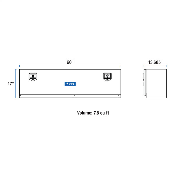 UWS topside truck tool boxes provide unbeatable storage and security for your items in the bed of your truck and on the jobsite. Each box features a corrosion-resistant aluminum construction, heavy-duty aircraft cable door supports and a stainless steel locking system -- all to keep your equipment and valuables safe and easily accessible whenever needed. Each UWS truck side tool box is constructed from extra-thick aluminum for increased structural strength. The tub is welded together into a single piece for weather resistance and to easily hold heavy tools and other items. The door features aircraft-grade stainless steel cables, ensuring reliable strength and door operation. The locking mechanism of this truck side tool box provides excellent security for your items, featuring a stainless steel, key-operated T-handle. Stainless steel construction supplies the lock with long-lasting corro