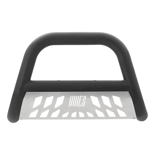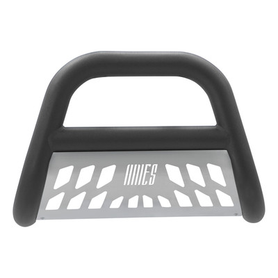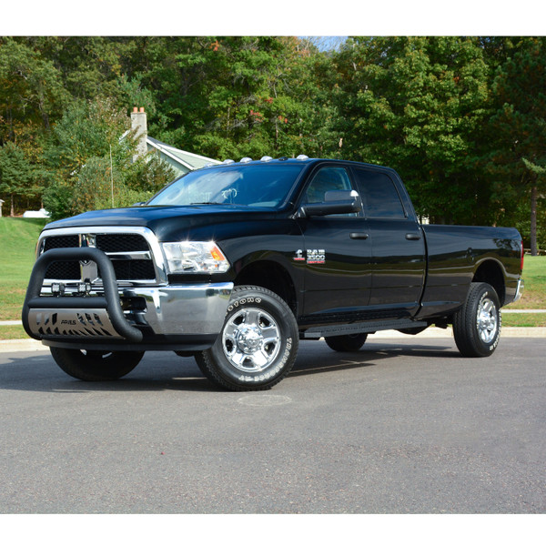 The ARIES Big Horn 4 bull bar boasts a hefty 4 diameter tube to give your truck a bold look with the toughness to back it up. It is constructed from aluminum alloy to be strong, lightweight and rust-free, and it is covered in a highly durable textured black powder coat finish. This tough finish is uniquely designed to hide minor scratches and grime, and it easily resists chipping and peeling. This bull bar is also available in a polished stainless steel finish to give you the freedom to customize the look of your truck. Each Big Horn bull bar offers easy customization options with its pre-drilled light mounting holes. The crossbar features two mounting points to accept an LED light bar or two LED work lights. The bull bar is also equipped with a brushed stainless steel skid plate. The skid plate is made from highly rust-resistant 304 stainless steel and protects against loose gravel and other small road debris. It comes with an aggressive ARIES-exclusive cutout and can also be removed for a customized look. Made to complement our Big Step side bars, the Big Horn bull bar is perfect for lifted trucks, diesels and full-size pickups. Not only does it provide a bold, aggressive look, but it is also made to fit your vehicle perfectly. Each one features a unique bend that accents the shape and contour of a specific front-end application. Our 4 bull bar is also equipped with vehicle-specific mounting brackets. This allows it to be installed quicker, fit better on the vehicle's frame and eliminates the need for drilling. It uses pre-existing factory holes in the frame to cut down on installation time and add rigidity. This bull bar fits select model years of the Ram 2500 or 3500 and Dodge Ram 1500, Ram 2500 or Ram 3500 (see application info to verify fitment).