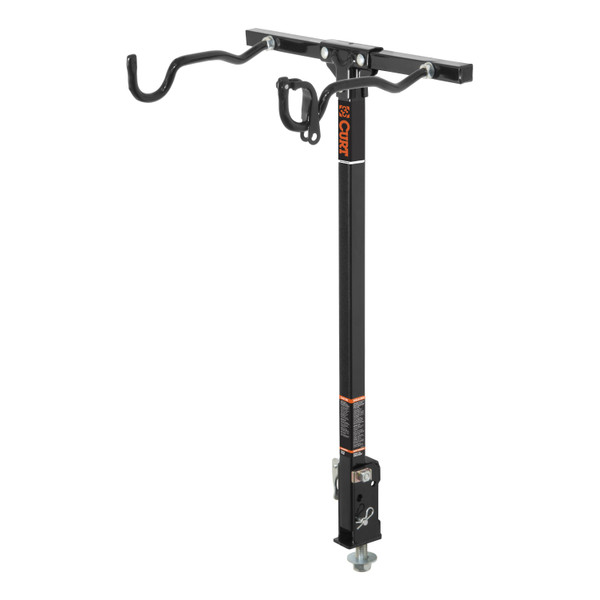 Camping on the lake shore, hunting in the Northwoods, biking down a mountain trail -- wherever you are headed this weekend and whichever toys you want to bring along for the ride, you can Bring It with CURT cargo management products. From our expanding line of bike racks to our new and improved cargo straps, we offer cargo management solutions to fit your unique lifestyle. The CURT bolt-on bike rack can be mounted on any ball mount, step bumper or fixed-tongue trailer hitch with a 3/4 hole, taking the place of a trailer ball. It comes with a tilt-away feature for easy rear vehicle access and has a lockable arm to keep bikes secure. The CURT bolt-on bike rack holds up to two bikes and comes with coated arms so as not to scratch the bike frames.