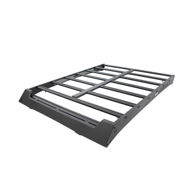 The CEROS Low Profile Aluminum Roof Rack brings cutting edge style and practicality to your truck. The aerodynamic, low profile design contours the vehicle roof’s curves with application-specific fit. The CEROS utilizes Go Rhino’s exclusive 4-CORE crossbars, an extruded track system that can work with any 1/4-20 hex bolt and offers unlimited mounting options for accessories, gear and tools. The frontmost crossbar supports the front fairing and can be used to mount light bars or multiple cube lights. The dropped edge of the fairing allows a single row light bar to remain flush with the frame’s topline, maintaining the sleek, streamlined look. Two side panel openings with removable, rattle-proof mesh screens will fit most 6” single row (SR) lights. (Note: Lights sold separately.) CEROS Racks come with a Limited Lifetime warranty on materials and construction and a 5 year warranty on the Textured Black Finish.