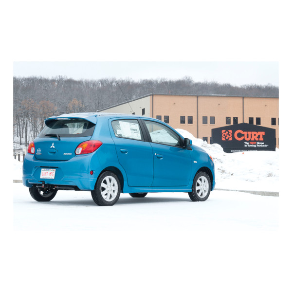 CURT class 1 trailer hitches are the lightest-duty hitches of our rear mount receiver lineup. They are engineered for reliability, welded together with quality American steel and blasted clean for a smooth finish. Tested to meet the strict demands of the industry, this CURT class 1 hitch with ball mount has a capacity to tow up to 1,500 lbs. of gross trailer weight and 200 lbs. of tongue weight. This means it can handle a variety of small trailers such as single-axle utility trailers, canoe and kayak trailers, dirt bike trailers and more. It can also accept a hitch-mounted cargo carrier or bike rack, making it a very useful addition to cars with limited cargo space (NOTE: Never exceed the lowest weight capacity of any towing component; i.e. the vehicle, hitch, trailer, etc).Class 1 hitches feature a 1-1/4 x 1-1/4 receiver tube opening and are typically mounted on compact cars, full-size cars and some smaller crossover SUVs, minivans and compact SUVs. This particular hitch and ball mount combination is designed to be a custom-fit trailer hitch for certain years of the Mitsubishi Mirage hatchback (to verify your vehicle compatibility, see the CURT application guide at curtmfg.com). It features a round tube frame and comes with a hitch pin and clip and all necessary installation hardware. This class 1 hitch kit also comes with a Euro Mount ball mount, with a 1-7/8 diameter ball, to be a complete towing package. Each CURT class 1 hitch is co-cured with a liquid Bonderite coating and a high-gloss black powder coat finish that provide a lasting defense against rust, wear and harmful UV rays.