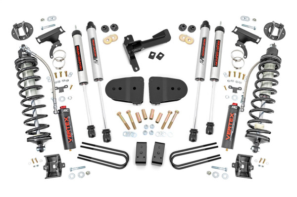 Give your fifth-generation Ford Super Duty superior lift height with Rough Countrys 3-inch Coilover Suspension Lift Kit! This all-inclusive kit comes with everything you need for a total transformation of your truck. Run up to 35in tires while preserving the smooth, factory ride quality with this impressive upgrade.
