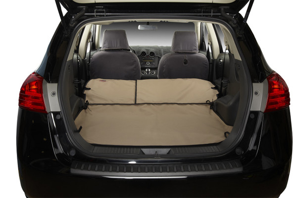 Custom Cargo Area Liner is designed to allow split seat backs to work in the up or down position for added cargo flexibility. Includes a bumper flap that easily pulls out from underneath when needed. Custom Cargo Area Liner helps protect your cargo area from dirt, scrapes and stains. Easily attaches around vehicle headrests with adjustable straps and side-release buckles. Multiple tie-downs, as needed, attach to existing cargo hooks. Finished edges and custom-fit hook and loop closures for split seat applications.