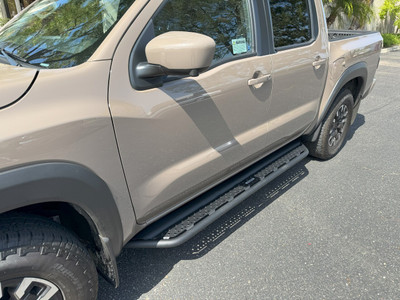 The Go Rhino Dominator Xtreme D2 combines the good looks and cool factor of the drop step design with the functionality of a traditional OE oval side step. The one-piece main bar is constructed of heavy duty steel tubing with the two welded hoops strategically placed beneath each door. The punched steel step pads offer no-slip grip in wet or muddy conditions and make entry and exiting a lifted vehicle easy. Installation is easy and the utilization of the OEM step mount locations means no drilling or cutting required. Hardware and brackets are included. The Xtreme D2 Side Steps come with a Limited Lifetime warranty on materials and construction and a 5 year warranty on the Textured Black Finish.