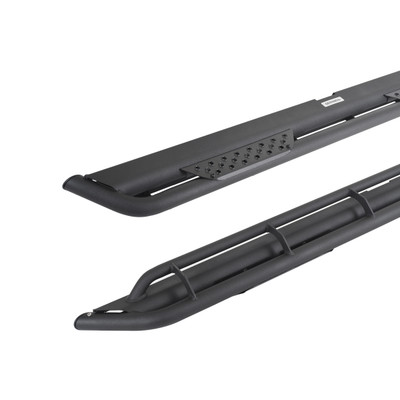 The Dominator Xtreme DT, or Dominator Tri-Tube, features a triple-bar design with full length outer and lower rub rails to give your vehicle a unique, aggressive appearance and increased protection for its body panels from trail obstacles and road debris. The main step platform is protected by a rugged outer rail that is buttressed underneath by the slider tube for additional strength. Two steel step plates with Go Rhino’s signature punched hex pattern offer a safe, no-slip grip. The step plates are removable for a minimal off-road look or paintable for customization. Installation is easy and the utilization of the OEM step locations means no drilling or cutting required. Hardware and brackets are included. The Dominator Xtreme DT Side Steps come with a Limited Lifetime warranty on materials and construction, and a 5-year warranty on the Textured Black powder coat finish.