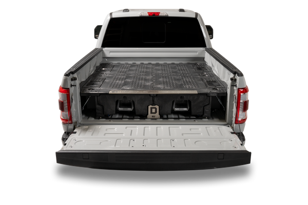 The DECKED in-vehicle storage system offers secure, weatherproof and organized storage with a sliding drawer toolbox system for pick up trucks. 100% American made, the DECKED system features two secure, full bed-length drawers capable of carrying 200lb each that glide effortlessly on industrial-grade wheels beneath a 2,000lb payload-rated deck. Constructed from rugged High Density Polyethylene (HDPE) and steel, owners get ergonomic access to tools and equipment while maintaining full use of the truck bed. DECKED systems are perfect for contractors, painters, carpenters, electricians, surveyors, plumbers, handyman services and the outdoor enthusiast who need their truck to have secure storage bins that are easy to access. The drawers slide out at waist height while still allowing the owner full use of their truck bed. The system, once assembled, is easily installed and removed. Accessories are available for customizable storage.
