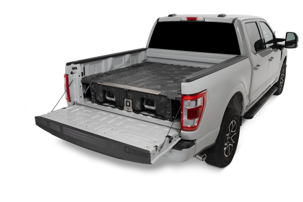The DECKED in-vehicle storage system offers secure, weatherproof and organized storage with a sliding drawer toolbox system for pick up trucks. 100% American made, the DECKED system features two secure, full bed-length drawers capable of carrying 200lb each that glide effortlessly on industrial-grade wheels beneath a 2,000lb payload-rated deck. Constructed from rugged High Density Polyethylene (HDPE) and steel, owners get ergonomic access to tools and equipment while maintaining full use of the truck bed. DECKED systems are perfect for contractors, painters, carpenters, electricians, surveyors, plumbers, handyman services and the outdoor enthusiast who need their truck to have secure storage bins that are easy to access. The drawers slide out at waist height while still allowing the owner full use of their truck bed. The system, once assembled, is easily installed and removed. Accessories are available for customizable storage.