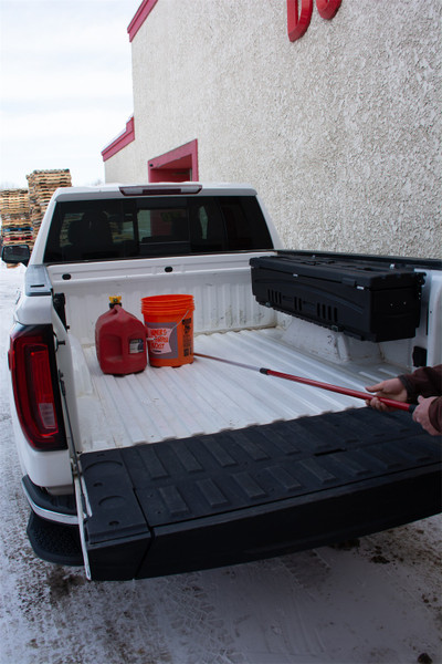 Can't reach something in your pickup bed? Don't like climbing into the bed to retrieve hard-to-reach items? The extendable DU-Hooky(TM) makes it easier than ever to reach and retrieve items from the back of your pickup bed. The DU-Hooky(TM) is the answer to retrieving those hard-to-reach items. A stout, cleverly designed reaching tool, the DU-Hooky(TM) extends from 5' to 7' with the quick twist of the handle. The angled shaft allows you to reach around items while providing leverage to pull especially heavy items back to you (up to 100 lbs). A unique positionable tip is designed to hook virtually any item allowing you to use DU-Hooky on just about anything large or very small. It also slides through bedliner grooves. DU-Hooky(TM) works great under toppers, tonneaus and lids. It's made of corrosion-resistant aluminum, so it's lightweight, and it comes with a mounting clip to keep it readily accessible in the back of your truck.