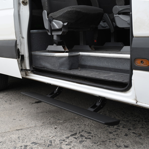 Go Rhino’s E-BOARD Electric Running Boards allow you to step in and out of your truck, Jeep, Bronco or SUV with ease. Open your door and E-BOARD automatically deploys, providing a secure 6” wide durable aluminum running board with an anti-slip surface. For additional safety and security, the integrated LED lights turn on automatically when the board deploys. Close your door and E-BOARD automatically retracts, providing your vehicle with optimal ground clearance and protection for its rocker panel while preserving the look of your vehicle. With dual motors on each E-BOARD, Go Rhino's electric running boards are reliable even in extreme climates. The easy-to-install, magnetically-activated door switches leave your OBD port free for other accessories. Automatic safety stop and manual override capabilities are included. E-BOARD electric running boards are available in two finishes: Textured Black Powder Coat or our exclusive Protective Bedliner Coating. E-Board Electric Running Board Kits come with a Limited Lifetime warranty on materials and construction and a 5 year warranty on the Textured Black Powder Coat finish.
