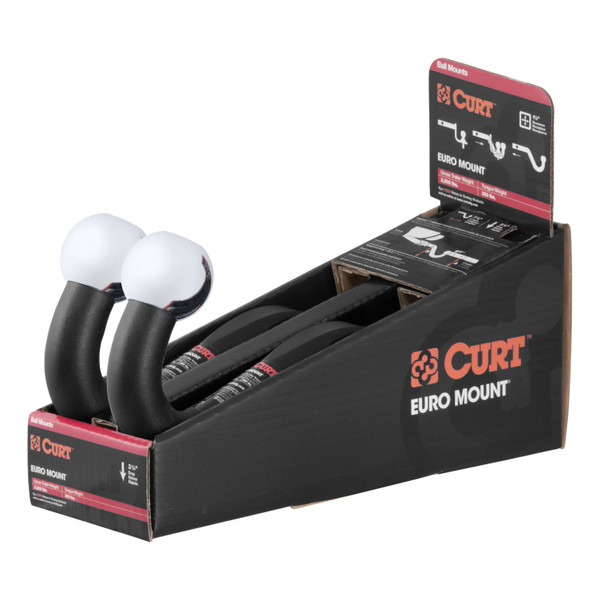 • Euro Ball Mount; 1.25 Receiver; Permanently Attached 2in. Trailer Ball; 3500lbs GTW; 350lbs TW; 3.25in. Drop; 7.25in. Length; Black; Multi Pack Qty. 2;
