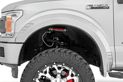 Rough Country's SF1 Fender Flares help you get the tough-looking finishing touch that your build deserves with a one-of-a-kind design. These flares complement the truck's body lines offering a clean look that will turn heads. The SF1 flare design gives the perfect amount of additional tire coverage for an oversized wheel and tire package and feature an integrated rear mud catcher to help reduce tire sling down the truck side. They are easy to install on your F-150, with excellent fitment right out of the box and includes all necessary hardware. The construction of these flares is from a durable ABS material that is both UV resistant for an uncoated install or paint-ready for a custom color match look.\Not only will you get the utility you need from these flares, but you'll also have a unique and aggressive look for your truck. Whether you're looking for functionality or an accessory to tie your lift, wheels and tires together, Rough Country's SF1 fender flares deliver on all fronts.
