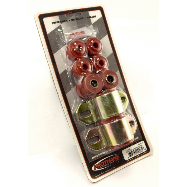 In this black 1-1/4 inch front sway bar bushing kit from Prothane, polyurethane based suspension, driveline and chassis components have been designed as an upgrade to the soft factory rubber...