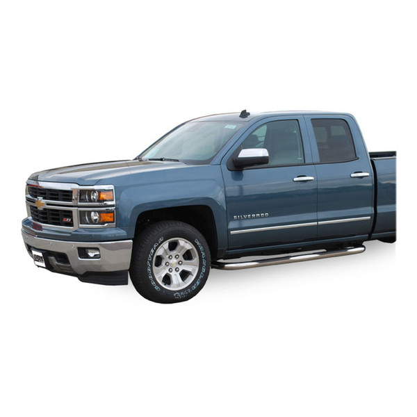 LUVERNE 3" round nerf bars provide a rust-free accent and a reliable step up into your truck or SUV. They feature a vehicle-specific design to contour to each unique make and model, and they are constructed from durable stainless steel to be impervious to rust. With non-skid step pads and heavy-duty, mandrel-bent tubing, these 3" nerf bars offer safe vehicle entry and exit, and they are available in two finish options for the look that best complements your vehicle. One of the greatest threats to nerf bars, running boards and side steps is rust. Whether you're braving the uncertainty of the off-road trail or just commuting back and forth to work every day, rain, road salt and dirt can quickly cover your nerf bars in a layer of unsightly rust. That is why both finish options of our 3" round nerf bars begin with heavy-duty stainless steel tubing. Stainless steel makes these nerf bars stron