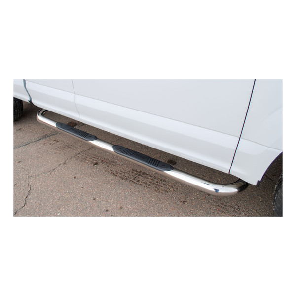 LUVERNE 3" round nerf bars provide a rust-free accent and a reliable step up into your truck or SUV. They feature a vehicle-specific design to contour to each unique make and model, and they are constructed from durable stainless steel to be impervious to rust. With non-skid step pads and heavy-duty, mandrel-bent tubing, these 3" nerf bars offer safe vehicle entry and exit, and they are available in two finish options for the look that best complements your vehicle. One of the greatest threats to nerf bars, running boards and side steps is rust. Whether you're braving the uncertainty of the off-road trail or just commuting back and forth to work every day, rain, road salt and dirt can quickly cover your nerf bars in a layer of unsightly rust. That is why both finish options of our 3" round nerf bars begin with heavy-duty stainless steel tubing. Stainless steel makes these nerf bars stron