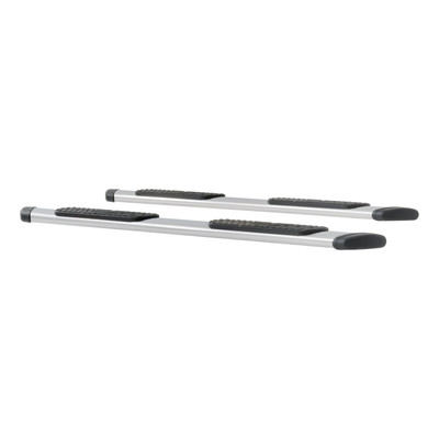 Not everyone understands the status that comes with owning a full-size truck or SUV, but for those who do, LUVERNE Regal 7 oval side steps are the side accessory of choice. They are the largest oval nerf bars on the market, featuring a patented design, non-skid step pads and a sleek nerf bar styling. Built on the idea that a deluxe ride needs a deluxe entrance, these 7" ovals have a width comparable to some of the largest running boards available. This, combined with the classic styling of popular nerf bars, allows Regal 7 oval side steps to easily live up to their name. Each is set with full-width step pads that offer a non-skid surface for ultimate comfort and safety. They are also capped on each end with contoured end caps, giving them a professional look and added protection against small rocks and road debris. Both the step pads and end caps are factory-installed and securely bolted