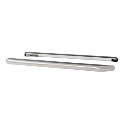 LUVERNE MegaStep wheel-to-wheel running boards give you the best of both worlds with a ready-to-work construction and the stylish of popular nerf bars. They feature high-traction rubber treads, a sleek finish and a non-corrosive build -- all to give you dependable footing whether you're headed for work or play. MegaStep wheel-to-wheel running boards are uniquely designed with extra length on the rear of the boards, reaching all the way to the back wheels. This provides a convenient and secure step for reaching into the truck bed and accessing the crossover truck tool box, headache rack or 5th wheel hitch. The entire length of the running boards is covered with a non-skid rubber tread for enhanced safety, even in wet, rainy conditions. Unlike plastic treads, rubber offers better grip for your boots or shoes. The base of MegaStep wheel-to-wheel running boards is an extruded aluminum alloy,