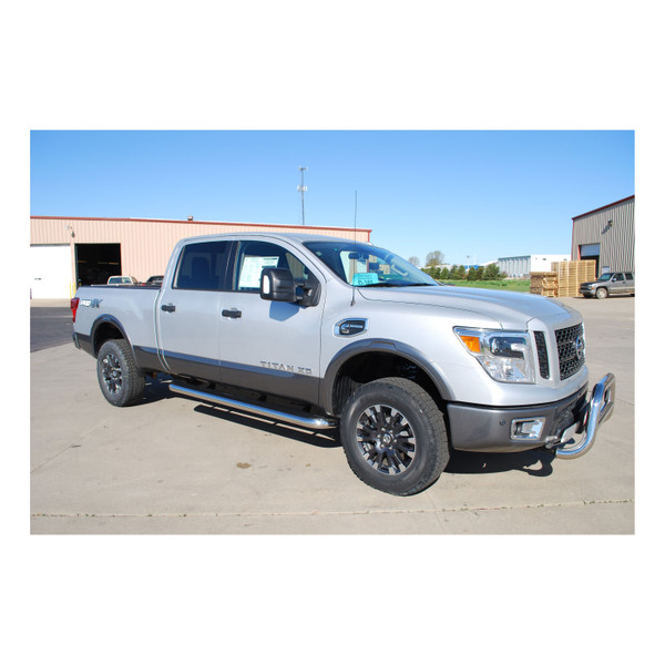 LUVERNE MegaStep 6-1/2" running boards are the ultimate combination of style and functionality. They have 5" wide treads that extend the full length of the side steps, and they feature a strong, lightweight aluminum core with a stainless steel trim for a bright, clean accent. MegaStep running boards mount easily with vehicle-specific brackets, pre-installed fasteners and an adjustable design to perfectly fit your unique vehicle. LUVERNE MegaSteps are designed to offer the best features from a variety of side accessory options. Their non-skid rubber treads cover the entire topside of the boards, giving them the functionality and convenience of a running board. However, unlike most running boards, MegaSteps are styled after the popular look of many nerf bars. This makes them a unique and useful extension of your vehicle. To give MegaStep running boards an even greater advantage over other