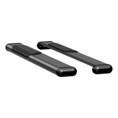 Like many LUVERNE side steps and running boards, O-Mega II 6" oval side steps are made to work hard and to do it with style. They are constructed from strong, lightweight, rust-free aluminum, and to truly make them a step up from the rest, we shield them in a highly durable powder coat finish. This ensures maximum corrosion resistance and excellent protection against scuffs and scratches. The side steps are available in two powder coat finish options, including textured black and silver powder coat. O-Mega II side steps are also made to provide safe, comfortable entry and exit from your vehicle. They feature tough aluminum step pads with protruded circular treads that will never wear or crack. The step pads offer a non-skid surface, and they are finished with a textured black powder coat for lasting corrosion resistance. Also unique to our O-Mega II step pads is their customizable positi