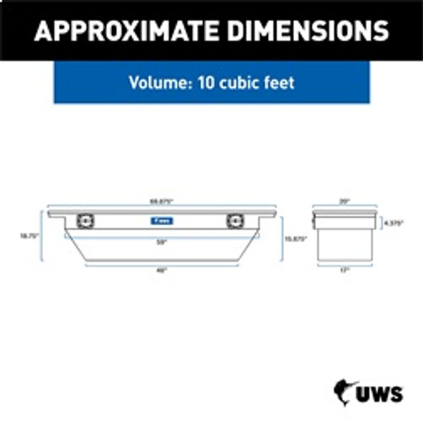 UWS Secure Lock crossover truck tool boxes provide the ultimate in security and convenience, offering you a truck bed tool box unlike any other. It features a unique locking system, an innovative interior and a highly durable design. The Secure Lock truck box operates with two lockable twist handles. These handles are key-operated and allow you to lock the truck tool box from either the driver or passenger side. The two locks also give you the option to lock both sides for maximum security. The lid of the Secure Lock tool box is particularly strong, featuring our RigidCore foam-filled design. This gives the lid greater structural integrity and resists bending and warping. Like most UWS tool boxes, this box also features extra-thick aluminum construction, and the tub is welded into a single piece to ensure waterproof protection for your items. It is also equipped with a MicroSeal gasket to keep out dust, grime, moisture and insects. To protect the interior of the Secure Lock tool box, it features a heavy-duty BedRug liner. This protective mat resists dents and damage to the box itself and to your tools and other items, and it helps trap dust and dirt for easy cleanup. The UWS Secure Lock truck tool box offers excellent organization for your tools, featuring an included three-compartment tray and built-in screwdriver holders. The lid is able to open to a complete 90 degrees for easy access to the interior contents, and it is equipped with self-closing struts that automatically close the lid with a slight manual pull, securing the box when your hands are full. The Secure Lock truck tool box is quick and easy to install, and it is available in multiple sizes to provide the perfect fit for your own unique truck bed.