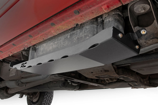 Give your diesel truck the protection it deserves with Rough Country's DEF Tank Skid Plate. On newer model GM trucks the DEF tank extends below the frame of the truck making it highly vulnerable to damage from rocks and debris. Keep this crucial area covered and protected with this handy upgrade from Rough Country. This durable steel skid plate is made of laser-cut CNC bent 3/16in steel plating to provide plenty of extra protection for the plastic factory tank. Unlike many DEF skid plates, each Rough Country kit is engineered with a series of openings allowing water and debris to drain out naturally. For a long lifespan of good looks, each skid is powdercoated black with a corrosion-resistant paint.