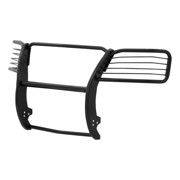 For the conqueror in every truck owner, the ARIES grille guard offers the tough, trail-ready look your truck demands. It feature a strong, one-piece build and a vehicle-specific design to perfectly contour to your unique vehicle. ARIES grille guards are also easy to customize with two finish options, pre-drilled light mounting holes and removable headlight cages. The ARIES grille guard begins with a one-piece frame of 1/4 thick welded plates and 1 1/2 mandrel-bent steel tubing for a solid foundation. Each one is made with a vehicle-specific design for a better fit, easier install and more secure mounting. The brush guards are custom-bent to contour to the profile of your vehicle, while the mounting brackets are positioned for a no-drill application. This means pre-existing factory holes are used to ensure a secure fit and less vibration. The ARIES grille guard also makes it easy to customize the look of your truck. Not only does the crossbar have pre-drilled auxiliary light mounting holes for aftermarket lights, but each grille guard is also available in two finishes -- polished stainless steel or semi-gloss black. The stainless steel grille guard is made with 304 stainless that is high in nickel content and truly resistant to rust and corrosion. It also comes with a mirror-like polished finish for a definitive shine. The black powder-coated grille guard is made with high-strength carbon steel construction for added strength, and it features a semi-gloss black finish to protect against rust, scratches and the elements. All grille guards also come with rubber stripping along the risers to protect the frame from scuffs and scratches. Whatever terrain you choose to conquer, we dare you to conquer it with the ARIES grille guard. Our semi-gloss black grille guards are backed with a three-year warranty, while our polished stainless models come with a limited lifetime warranty. Both are available for a variety of makes and models of pickup trucks, SUVs and crossovers.