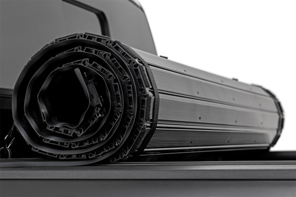 Your truck bed is built for hauling, but without a cover, your cargo is exposed to the elements and prying eyes. Rough Countrys Hard Roll-Up Bed Cover solves that by keeping your gear secure, dry, and protected while adding a sleek, low-profile look. Flush, Low-Profile Design: With a stylish matte black finish and sleek aluminum slats, this cover not only protects but also adds a stealthy, streamlined look to your truck. Quick and Easy Access: Roll up the cover for quick access to your gear, and with a simple cable pull, it unlocks instantly. When youre done, the auto-latching system secures it back in place-quick and hassle-free. Engineered for Strength: With its black powder-coated aluminum frame, this cover resists corrosion and holds up against even the harshest conditions. Built to support up to 600 lbs of evenly distributed weight, its made to keep going, mile after mile. 5-Year Warranty: We stand behind our gear, so you can trust this bed cover to protect your cargo with a solid 5-year warranty. With easy installation, rugged durability, and the strength to handle the toughest conditions, this cover is the ultimate upgrade for your truck. Equip your ride and hit the trails knowing your gear is safe and secure!