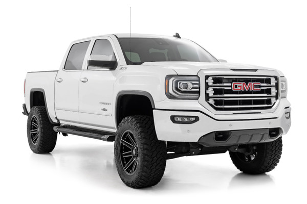 Level up your trucks functionality and style with the Rough Country HD2 Running Boards. Crafted with precision and designed for those who demand the best, our HD2 running board is engineered to be your step for a lifetime of adventures. Corrosion-Resistant Aluminum: Imagine stepping into your truck on a platform built for battle. Thats the HD2 experience. The HD2 combines the strength of 100% aluminum with a black powder coat finish, ensuring it's lightweight, corrosion-resistant, and rust-free. Rock-Solid Protection: We know the road can be tough! Thats why our HD2 running board has durable composite endcaps. No more worrying about flying rocks and debris, these endcaps are made to handle the rough stuff and still look good. Spacious Stepping: Got big boots? No sweat! The HD2 boasts a generous 5' wide footing area. Now you can get in and out with ease, no matter how muddy or dusty your adventures get. And with a non-slip surface, you'll stay steady on your feet, rain or shine. Style Meets Function: We know looks matter. That's why our running board isn't just durable it's made with a sleek, stylish design that blends flawlessly with your truck, providing a smooth cover for any exposed frame. Easy Installation: No need to spend hours in the garage. Our running board is designed for easy, drill-free installation so that you can hit the road in no time. Plus, its compatible with most truck models, making it a hassle-free upgrade. With hassle-free installation and design thats as rugged as it is stylish, your truck will turn heads and tackle trails like never before.