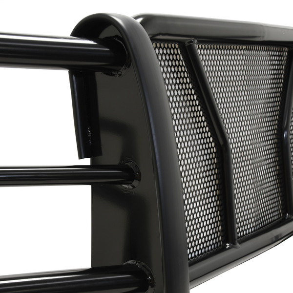 The HDX Grille Guard is the ultimate in extreme truck gear. Its a fully welded 1-piece grille guard that features full wraparound wings made of heavy duty 2 diameter tube. Uprights are finished and protected with extra wide rubber that is 1/8 thick and 2 3/4 wide resulting in a solid clean look. The full punch plate grille protects the vehicles grille area. HDX Grille Guards are available in stainless and black powder coat finish.