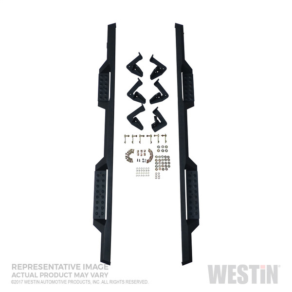 Westins HDX Drop Nerf Step Bars provide the rugged look and function that truck owners need and want. They feature a solid 1-piece steel construction and heavy duty punch plates creating high traction step areas. The HDX Drop Nerf Step Bars also feature Westins notched bar design which provides more than 2 of additional toe/heel placement versus competitive brands. Available in a textured black finish that complements Westin HDX Bumpers. The HDX Drop Steps have vehicle specific applications and include a vehicle specific mount kit, installation hardware and instructions.