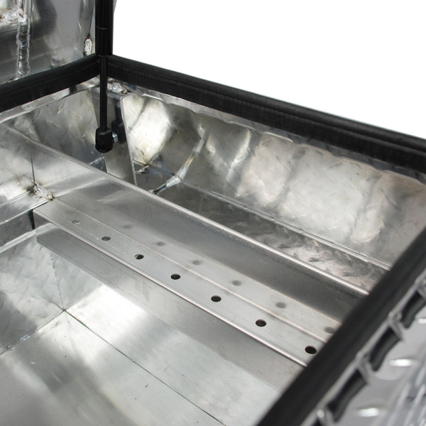 Westins HDX Crossover Tool Box is designed to mount closely to the back of the truck cab and span the width of the truck bed from rail to rail. The top and lid do not overhang and are designed with angled ends for a clean look against the cab. Included with the Crossover Tool Box is a heavy duty injection molded organization tray with multiple divided areas to manage smaller items. The tray slides along the inner box trim for convenient positioning. Choose this tool box in Low Profile with increased clearance for visibility or Xtra Deep for greater cargo capacity.
