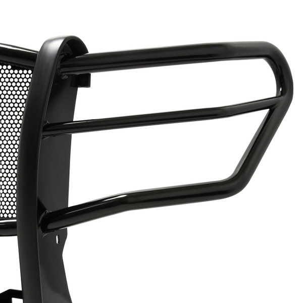 The HDX Grille Guard is the ultimate in extreme truck gear. Its a fully welded 1-piece grille guard that features full wraparound wings made of heavy duty 2 diameter tube. Uprights are finished and protected with extra wide rubber that is 1/8 thick and 2 3/4 wide resulting in a solid clean look. The full punch plate grille protects the vehicles grille area. HDX Grille Guards are available in stainless and black powder coat finish.