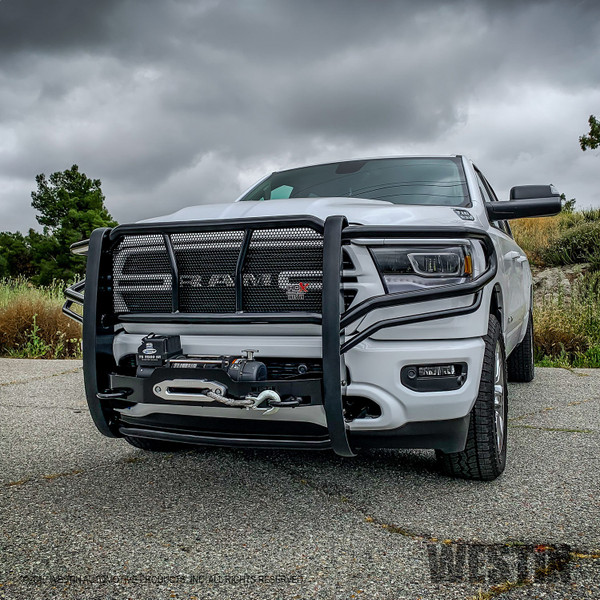 Westins HDX(TM) Winch Mount Grille Guards are the maximum in grille guard design engineering and capability. Accommodates most manufacturer winches with up to 12000 lbs rated line pull. The winch tray is pre drilled for winch mounting and utilize a low profile MAX(TM) winch tray faceplate where applicable.