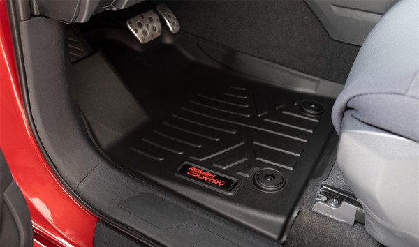 Create A New AccountKeep your carpet in pristine condition with Rough Countrys Floor Armor: Heavy Duty Floor Mats and Rear Cargo Liners. These eco-friendly, semi-flexible floor mats are made of an ultra-durable Polyethylene that offers a strong, rigid shape thats incredibly easy to clean. Where simple rubber floor mats fail, Rough Countrys line of Floor Armor is guaranteed for life and will never crack, split, or break down over time. The high-quality design extends the lifespan of your carpets and the raised-lip design insures your interior will always be protected from mud, moisture, and more. These contoured floor mats are laser-measured for each make and model; designed to be a precise fit that grips the carpet and stays put. An aggressive-looking textured surface gives your muddy shoes plenty of traction and looks great inside the vehicle. No matter what you track in, Rough Country Floor Armor is incredibly easy to clean. Just pop them out of the floorboards and rinse away the dirt! Includes Rough Countrys Lifetime Replacement Warranty.