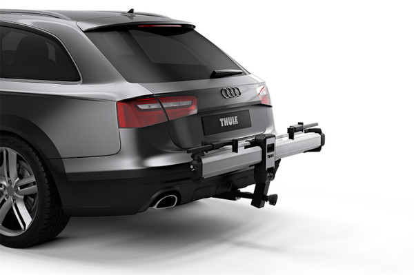 Premium aluminum platform bike rack is fully lockable, easy to use, and holds bikes without frame contact.Helium Platform Hitch Bike Carrier