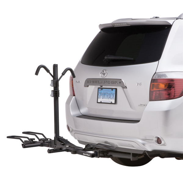 Fits 2 Receivers. This carrier offers the convenience and ease of loading of a platform hitch rack at a great value, and its adjustability enables it to carry a wide range of bike styles. The sliding wheel cradles can accommodate virtually all wheelbases and tire widths, and the adjustable rubberized frame hooks make securing your bikes as simple as can be.