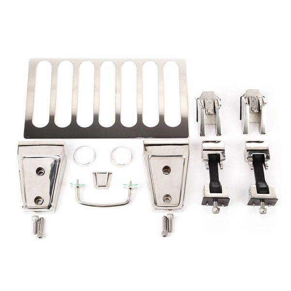 The Rugged Ridge Stainless Hood Dress-Up Kit has everything you need to revitalize the looks of your JK?s hood in one convenient kit. Constructed from high-quality 304 Stainless Steel that has been polished to a mirror finish for looks that last and last. Each kit contains a hood vent, a pair of hinge covers with attaching bolts, a footman's loop, hood catch set, hood bumper trim bezels and even a washer nozzle cover for a totally new look.