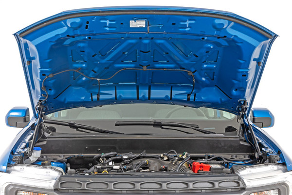 Must-Have Hood Upgrade. Easily and effortlessly access your engine components with this handy device. Rough Country's Hydraulic Hood Assist for Ford Maverick features a set of gas-charged struts that help automatically raise the hood, increasing safety by avoiding the need to mess with the prop rod or rest the hood on the front windshield. This innovative kit features mounting brackets that rest firmly in the center of the hood, helping to facilitate the opening and closing process while giving a killer look to an otherwise barren area. Installation. Featuring a 100% bolt-on installation, installing this Hood Assist couldn't be easier. With an estimated timeframe of 30 minutes this full kit can be installed at home using standard tools and can be completed efficiently and quickly! Limited Lifetime Replacement Warranty. Rough Country's Hydraulic Hood Assist is backed with a limited lifetime replacement warranty towards manufacturer defects. As such, the product is protected from structural and workmanship damage after the date of purchase. With our industry-leading warranty give yourself peace of mind when using Rough Country's Suspension products!