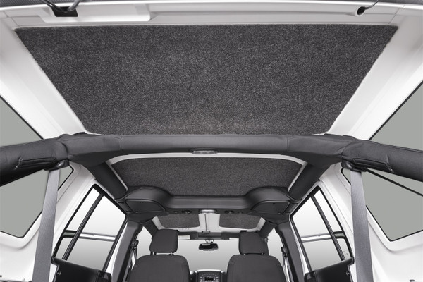This 100% waterproof, fully custom die cut headliner kit installs quickly without the need to remove your hard top. The individual pieces can be quickly installed by removing the specially designed tape and pressing firmly into place. The BedRug material resists all harsh chemicals, and will not stain, stink, mold or mildew. The 1/2-inch polypropylene foam will help insulates your interior from road noise and heat.