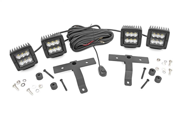 Create A New AccountCOMMAND THE DARK with Rough Countrys Quad LED Light Pod Kit! This all-inclusive kit comes with everything you need to mount two pairs of LED cubes on your Jeeps cowl with an easy-to-install design that goes on lightning fast! Gain an incredible 5,760 lumens and 72 watts of combined lighting power with an easy 100% bolt-on installation process that will have you up and running in no-time flat! No cutting, no drilling, just bolt them up and instantly gain a powerful output of off-road illumination so you can always see the trail ahead. Each mount holds two LED light pods with a postionable base that lets you choose if you want them forward-facing or pitched outward for a wider area of coverage. Rough Country LED light cubes are IP67 Waterproof and includes a premium, braided wiring harness with in-line fuse and on/off switch.
