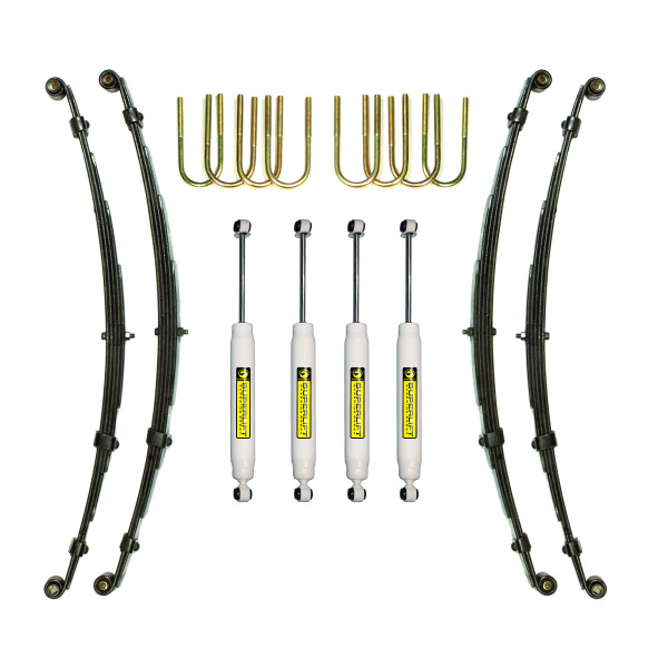 Includes: Front and rear leaf springs, shocks, u-bolt kits, and all hardware required