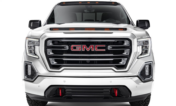 Light up your hood and your truck's appearance with the Aeroskin ® LightShield™ Pro Color-Match Hood Protector. It's a seamless match to your OEM paint - more than a match for anything on the road. It's the first hood shield featuring fully integrated amber LED running lamps with multiple light output sequences for added ?ash and function. The Aeroskin® Lightshield™ Pro Color-Match features a curved, aerodynamic design creates a powerful upstream of air that sweeps bugs, dirt, and road debris up and away from your vehicle, leaving your hood looking showroom-?oor-new. The single-piece construction uses UV-resistant Dura-Flex 2000 TPO material, so it bends without breaking, ?exes without cracking, and never discolors from the sun. The 3M automotive-grade adhesive makes installation fast and easy - no tools or special hardware required. Proudly made in the USA with global materials.