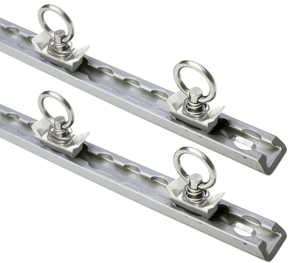Custom Core Trax 1000 tie downs bolt to the steel tubes in your deck to secure bulky loads. Made from powder coated 6061 T6 aluminum with stainless steel tie down loops, 500 lb. pull-out rating each...