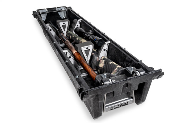Piecekeepers include two foam-backed, molded resin dividers for transporting shotguns and rifles securely in the DECKED Drawer System. They offer secure, padded cradles that grip the stock and barrel for convenient, easy-to-remove-and-replace access to firearms. Piecekeepers have three slotted cutouts to accommodate three long guns per drawer, utilizing the same secure multi-position drawer slots and locking clips as Drawer Dividers, allowing for easy placement and adjustment. Additional clips are included. Fits both drawers on full-size truck and cargo van Drawers Systems and the wide drawer only on midsize trucks. Does NOT fit narrow midsize drawers.