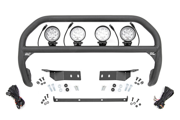 Create A New AccountImpressive Protection! Beef up the front end of your Tundra with Rough Country's Nudge Bar. This durable 2- in. thick tubular steel bull bar provides unbeatable protection for the front of your vehicle all while offering multiple LED mounting solutions to provide ample lighting for the trail ahead. Durable Construction and Illumination. Rough Country's Nudge Bar is constructed of 2- in. diameter steel and features a durable powder-coated finish. Each Nudge bar has the capabilities to add our 20 in. light bar, 4 in. round lights, or our wide-angle 3 in. OSRAM LED pod lights. Ranging from 4320 to 13,500 lumens you can equip your truck for the task at hand and never miss the trail at night! Installation. Featuring a 100% bolt-on installation process, installation couldn't be easier. With an estimated timeframe of 2-3 hours this full kit can be installed at home using standard tools and can be completed efficiently and quickly! Limited-Lifetime Replacement Warranty. Rough Country's Nudge Bar is backed with a limited lifetime replacement warranty towards manufacturer defects. As such, the product is protected from structural and workmanship damage after the date of purchase. With our industry-leading warranty give yourself peace of mind when using Rough Country's Suspension products!