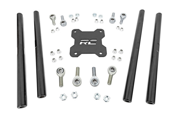 Take your UTV's suspension to the next level with Rough Country's Heavy Duty Rear Radius Arm Kit. This easy to install upgrade is a must for your vehicles suspension when taking to the trails. Boasting a massive 1.25 DOM tubing these arms are far superior to the stock equipment providing peace of mind while you're enjoying your off road outing. This simple, 100% bolt-on upgrade goes on lighting fast so you can instantly increase your side by side into a more aggressive beast on the trails. Each Heavy Duty Rear Radius Arm Kit a durable, solid-steel construction and black powder coat finish that's built to withstand the elements for a long lifespan of unfaltering performance.