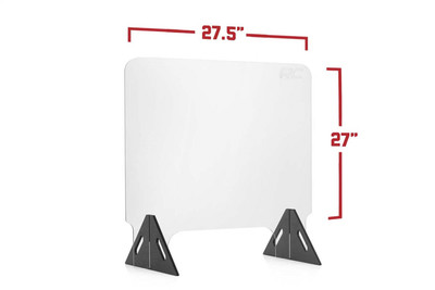 Keep your counter sanitary with Rough Country's durable Sneeze Shield. This portable, protective barrier is designed to protect your employees and customers from dangerous germs and bacteria. With a broad 27.5in x 27in profile, each Sneeze Shield offers excellent coverage to keep you out of contact with germs. A convenient cutout area at the bottom of each shield allows you to easily transfer cash or goods while staying safe. Rough Country Sneeze Shields are made of a durable polycarbonate construction that's considerably more durable than glass and other materials. Each Sneeze Shield features a scratch resistant hard coating on both sides to ensure a long scratch-free lifespan, and can be easily cleaned and sanitized. Rough Country Sneeze Shields feature a sturdy base that's easy to assemble and conveniently portable. If you want to protect your employees and give your customers more peace of mind, Rough Country's Sneeze Shield is a must have for your work space.