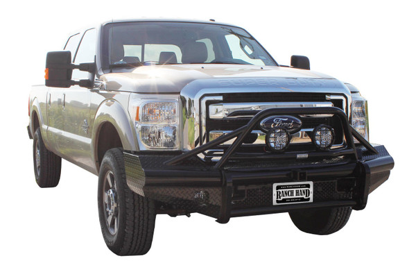 Ranch Hand's Bullnose Front Bumper is tough and dependable. It is designed for the customer who wants the protection of a front end replacement without the grille guard. The Bullnose Legend features 4 40 schedule pipe with a 2 receiver. The Bullnose has off road rally styling with 12 gauge contoured skirts. Optional lighting is easy to install on the pre-drilled light mounts.