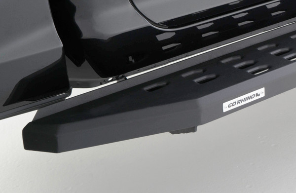 The legendary RB Series of cab length running boards from Go Rhino will make your truck, Jeep or SUV stand apart from the crowd. These, aggressive, stylish bolt-on side steps take their visual inspiration from the Ford Raptor but are made for more than just looks. The RB20 running boards have perforated holes punched into the surface of the step, which gives maximum traction and prevents mud, ice, and snow from accumulating. The corrosion-resistant 16-gauge zinc coated steel steps are mounted high and tight, giving them plenty of clearance for off-road adventures, and are strong enough to support hundreds of pounds. The RB20 is offered in textured black powder coat or rugged, bedliner coating. Hardware and brackets are included and installation on most vehicles will not require drilling. RB20 Running Boards come with a Limited Lifetime warranty on materials and construction and a 5 year warranty on the the Textured Black Finish.